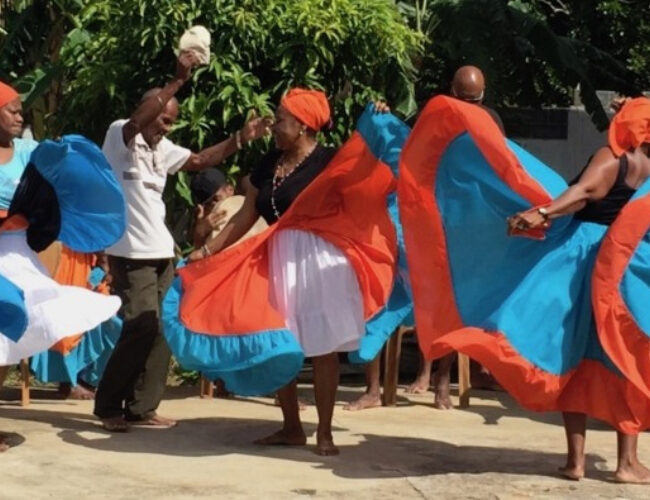 The forcibly displaced, chronically marginalised, and geographically dispersed Chagos Islanders from the Chagos Archipelago in the Indian Ocean have faced multiple challenges in practicing and transmitting their cultural heritage. Funded by AHRC, the CHAGOS: Cultural Heritage Across Generations project supported Chagossians to share and preserve their cultural heritage. During workshops in Mauritius and the UK in 2017, Chagossian elders shared with the younger generations their knowledge of coconut handicrafts, medicinal plants, cuisine, musical instruments and song and dance. Photographs, instructive films, and artefacts generated at these intergenerational heritage transmission workshops were displayed in exhibitions installed six times in Mauritius, La Réunion, and the UK. The CHAGOS project website displays photographs, instructive films, downloadable recipes, and the Chagos Tambour Group album which was produced by the CHAGOS project in 2018. The CHAGOS team contributed to the Mauritian government’s nomination file for the successful inscription of Chagossian tambour music on the UNESCO List of Intangible Cultural Heritage in Need of Urgent Safeguarding in 2019.