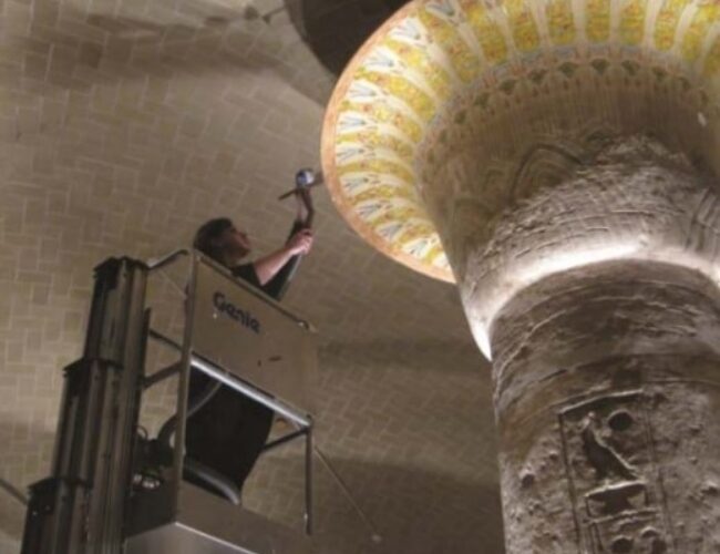 The Penn Museum completed a major conservation project on two masterpieces of pharaonic architecture in our collection: the throne room from the palace of Merenptah at Memphis and the limestone offering chamber of Kaipure. Funding underwrote three paid pre-program interns, providing valuable experience to developing conservators. The interns fully documented and treated all 62 blocks from the limestone offering chamber of Kaipure, revealing details not previously visible or appreciated and enhancing their use for research and display. Funding also supported 3D scanning of the palace of Merenptah, providing integral documentation as the team deinstalled the architectural elements in preparation to move them to renovated gallery spaces. The Museum did not have information about the original 1926 installation of the objects. Laser scanning and photogrammetry supported volumetric analysis to calculate the objects’ accurate weights, provided information on original decoration and historic restoration, and is enabling the team to digitally manipulate fragments to find joins. |