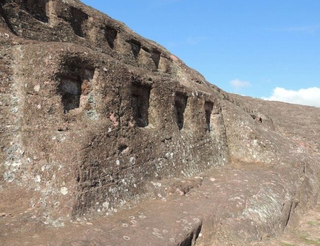 Samaipata's massive carved rock formation, "El Fuerte," retains evidence of pre-Inka, Inka, and Spanish colonial use of the site. [Photo credit: Project organizer]