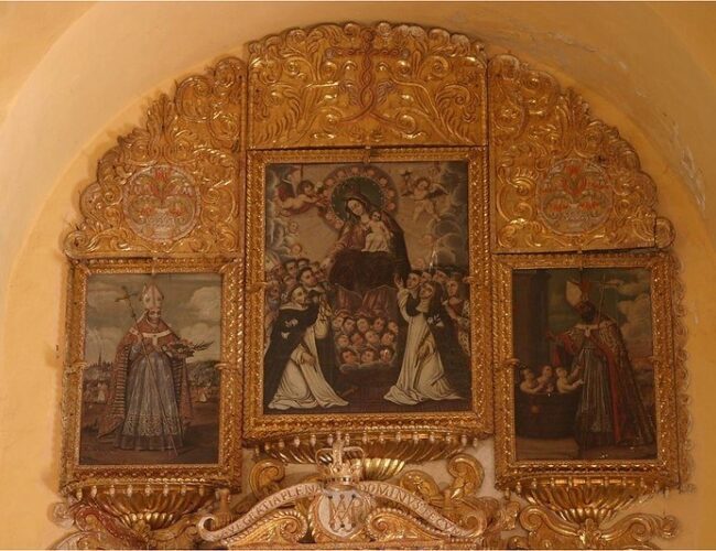 This project involves the conservation of the elaborately carved and gilt Altarpiece of the Virgin of the Rosary, including its several oil and embossed paintings on wood and wooden sculptures.