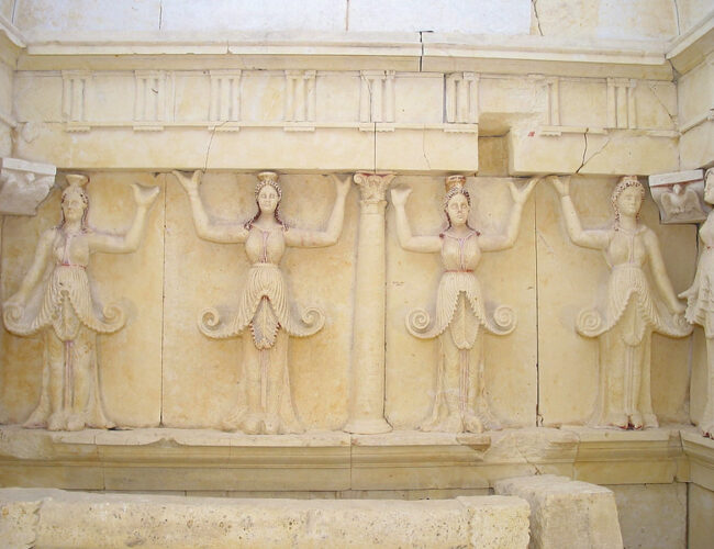 Discovered in 1982 near the village of Sveshtari, this 3rd-century BC tomb has a unique architectural decor, with polychrome half-human, half-plant caryatids and painted murals. [Photo credit: Project organizer]