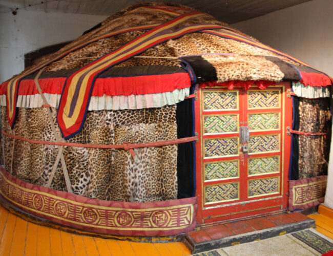 The Leopard Skin Ger was a personal belonging of the last King of Mongolia. This project includes the conservation of the ger's interior and exterior, including the outer leopard skin covering and inner silk lining.