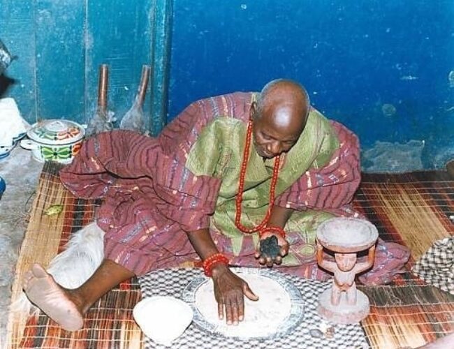The chants of “babalawos,” or elderly priests, of the Ifa are reflections of Yoruba history, language, and beliefs. [Photo credit: Project organizer]