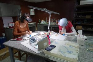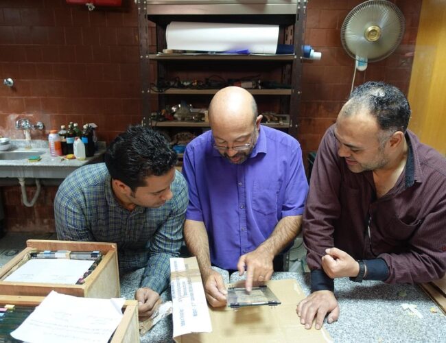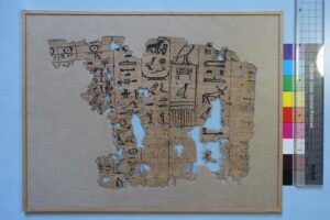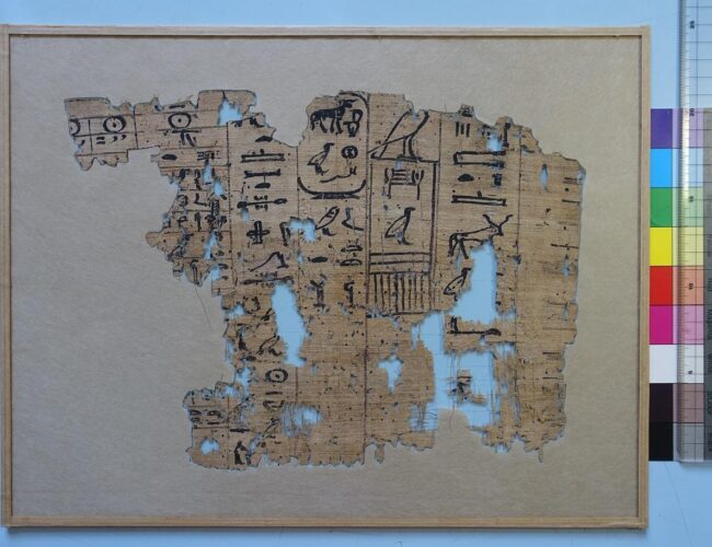 In 2013, several papyrus fragments were excavated in the Wadi el-Jarf. On site, they were dusted, roughly flattened and mounted between glass using stripes of Filmoplast. The project objective was to improve the condition, presentation and mounting by a thorough conservation and mounting campaign. Project Director: Pierre Tallet