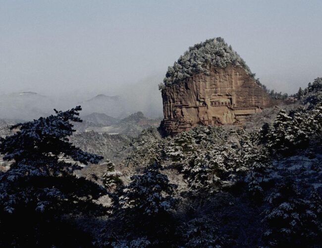 | Maijishan Grottoes are located in Tianshui, Maiji, Gansu Province. Developed between the 5th to the 18th century AD, the cave temples are situated to the west of the Qinling Mountains and north of Xiaolongshan Forest, about 45km from Tianshui City. The grottoes are located at what was once two major cross roads of the Silk Road. This location nurtured the perfect environs to cultivate all different forms and interpretations of Buddha and the bodhisattvas that are still seen inside the grottoes today. There are over 7200 sculptures and mural paintings that stretch over 1000 square meters. The site integrates the spectacular geomorphological landforms with rich historical, cultural and artistic values. The cave temples at Maijishan have been called a “gem” in China’s clay art history. This is due to the significance and scale of the sculptures present in it. |
