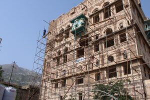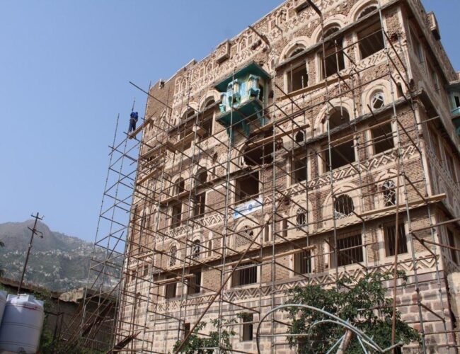 World Monuments Fund was awarded a grant of £100,000 in support of conservation skills training, post-conflict planning and physical restoration in the historic city of Taiz, Yemen. Taiz is the third largest city in Yemen. Picturesquely situated at the northern foot of Mount Ṣubr, the walled city grew to prominence in the eleventh century. Taiz’s rich historic fabric includes many fine, elaborately decorated multistory houses, and several Ottoman palaces, one of which is now the National Museum. Our project involved working with the General Organization of Antiquities and Museums, researchers and students from the University of Taiz to identify buildings facing critical needs and carry out emergency repairs at the National Museum, and to continue the process of preparing a conservation plan for the old city that was interrupted by the war. Taiz is a battleground in the civil war that has consumed Yemen since early 2015, claiming over 10,000 civilian lives. In 2016, the National Museum was shelled and its collection of manuscripts was destroyed. World Monuments Fund placed the historic city on the Watch in 2018 as an expression of concern for the protection of the historic built fabric of Taiz, and for the welfare of its citizens.