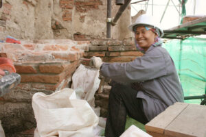 Severe flooding in 2011 damaged the brickwork, stucco, woodwork and mural paintings of the wat, one of the central landmarks of Ayutthaya, the former capital of the Kingdom of Siam. [Photo credit: Project organizer]