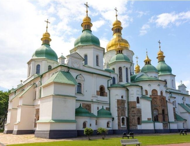 St. Sophia of Kyiv Cathedral dates back to the eleventh century and is part of the St. Sophia of Kyiv National Sanctuary Complex. Due to the ongoing war in Ukraine, the cathedral and its surroundings are susceptible to severe damage.