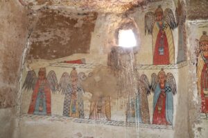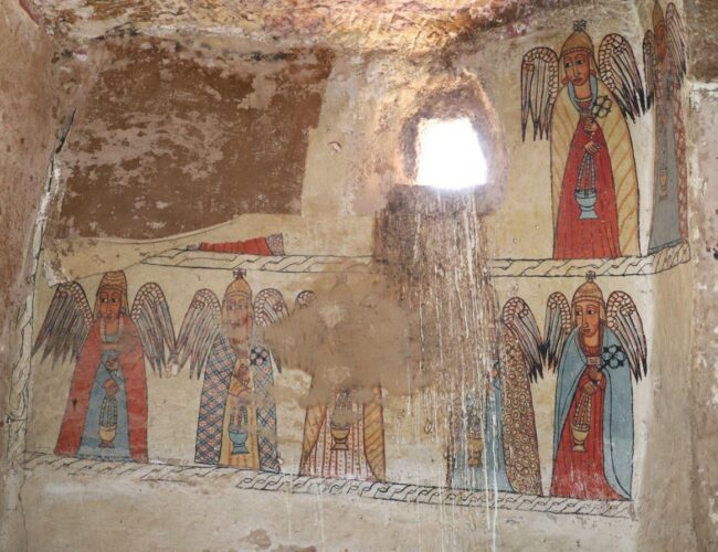 Wall paintings are being lost from the churches of Tigray at an alarming rate. Natural deterioration is a longstanding reason for this, but there are also newer threats. Paintings are damaged or destroyed when old churches are replaced with new buildings. Well-meaning but misguided local attempts at renovation have the same outcomes. Protective oversight and regular maintenance are lacking. Establishing a comprehensive record of the paintings and raising awareness of their conservation requirements are therefore urgently required. These are the primary aims of this 2-year project. In October 2019, the EHF, working with the TCTB and ARCCH, initiated the survey, which encompassed 15 churches in the regions of Adigrat, Atsbi, Sinkata, Gheralta and Mekelle. Churches were identified through research of archival records and by consulting local people. At each site, comprehensive photographic records were made. Paintings were investigated using portable microscopy and multi-spectral imaging, and small paint samples were taken for analysis. This will provide the most in-depth technical assessment yet undertaken. The survey is timely. Survey findings indicate that about 19% of all known wall paintings in Tigray have disappeared in the last 50 years; half of this amount has been lost in the last 5 years.