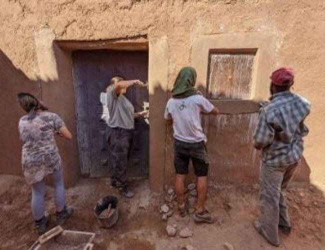 Terrachidia’s initiative focuses on revitalising architectural heritage and cultural landscapes in the M’hamid and Ich Oases in Morocco. With a history of engagement dating back to 2012, Terrachidia is deeply embedded within these communities, fostering collaborative efforts to safeguard their traditional building techniques and empower local artisans.